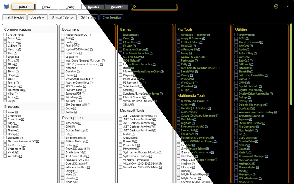 • Debloating Windows by disabling or removing unwanted built-in features and apps